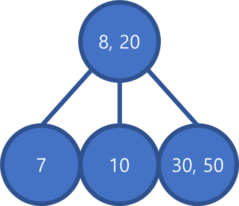 - 모든 내부 노드(Internal node)는 2개 또는 3개의 자식 노드를 가진다.
