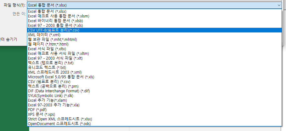 스프레드 시트의 변환 : 대표적인 데이터 형식