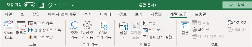 엑셀 개발 도구 활성화