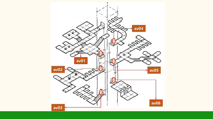 구슬을 포털에 지불하면 포털이 활성화되고, 이후 포털을 이용 가능하다. 포털로 이동 가능한 지점은 모두 여섯지점이며, 포털은 다섯 개만 존재하므로 모두 활성화시켜도 한 곳은 갈 수 없는 곳이 존재한다. 포털은 구슬로 활성화시킬 때, 이 포털이 어디로 보낼지 결정된다. (구슬로 활성화시키기 전에는 어디로 가는 포털인지 알 수 없다.) 하나의 포털이 한 곳으로 보내는 것은 아니다. (ex. 첫번째 석상은 av01로 보낼 수도 있고, av05로 보낼 수도 있다)