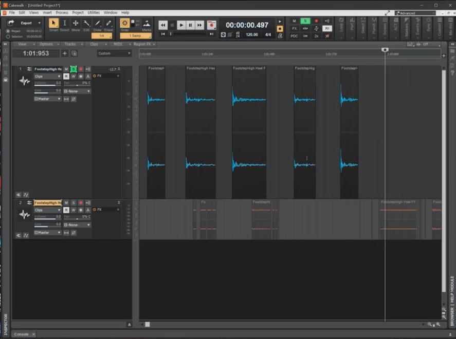 라운드 무빙 테크닉 - 발소리 1을 무한 반복 하는 것이 아닌, 비슷한 ver 2와 3, 4, 5를 넣고 출력을 하는 기법.
