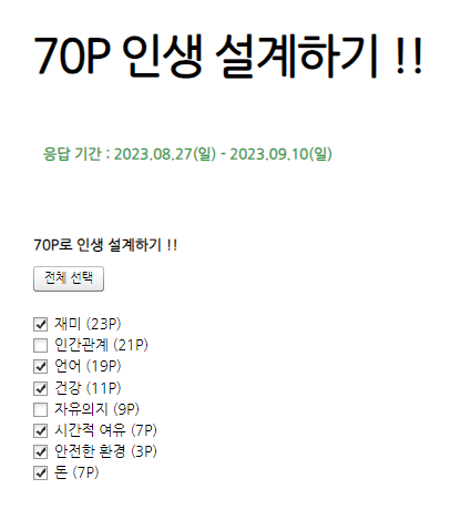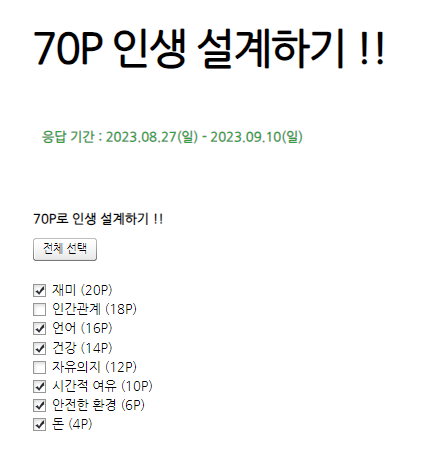 전체 총점 100P 중 70% 비율로 행복한 인생 설계하기