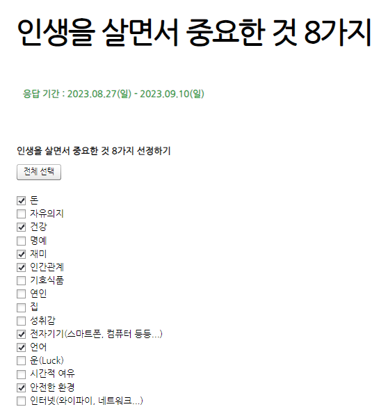 인생을 살면서 가장 중요한 것 8가지 선정하기