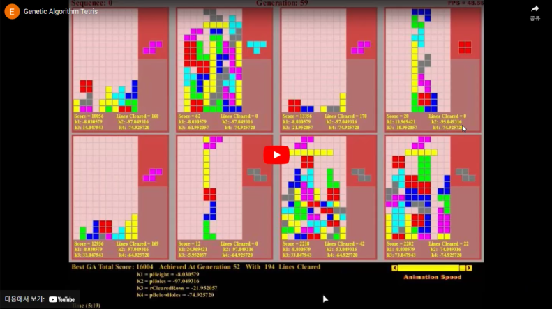 인공지능의 적용 예 - Machine Learning (강화학습 + 유전알고리즘 - 게임)