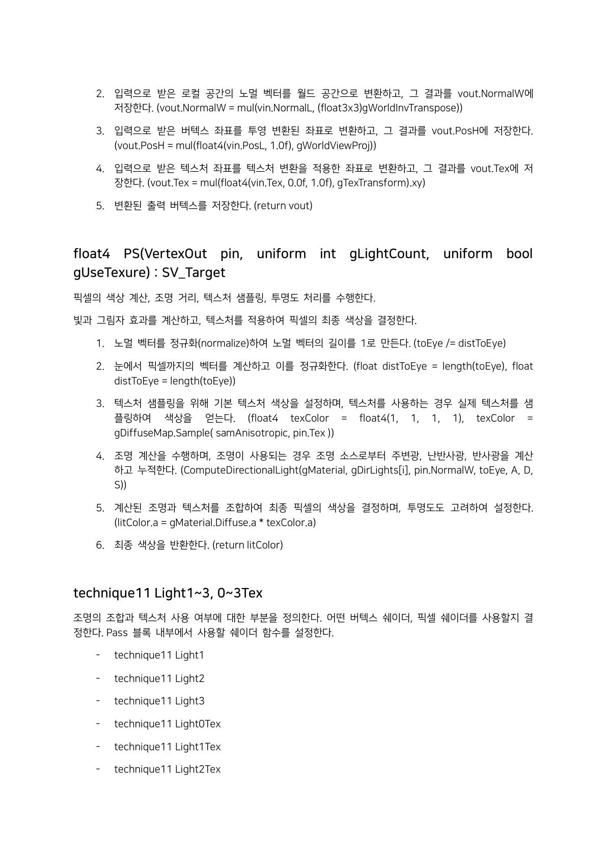 - 파일 확장자 fx파일로 셰이더 코드들, 상수 버퍼의 내용들로 구성된다.