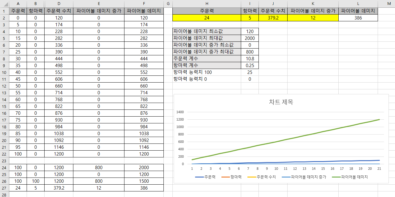 1. 모든 능력치가 0이라도 파이어볼 데미지는 최소 120을 나타낸다.