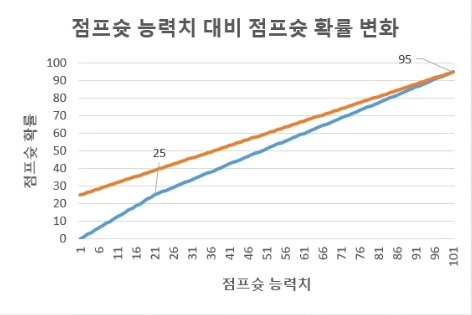 점프슛 확률을 최소 25%~최대95%로 설정하여