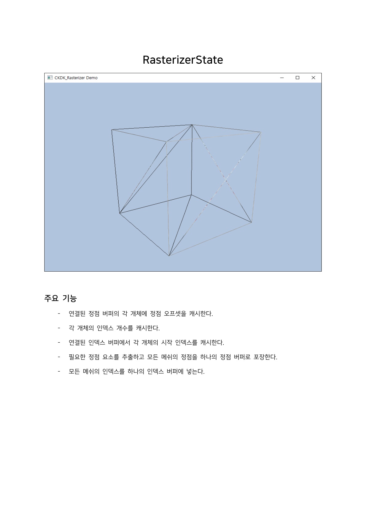 - Rasterizer의 상태를 구성할 때 사용되는 설정들의 집합