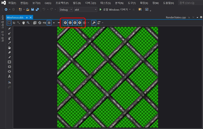 → 텍스처의 알파값 위해 알파채널 추가 필요