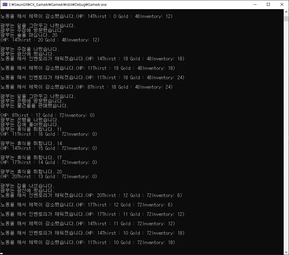 cout << "노동을 해서 인벤토리가 채워졌습니다.";