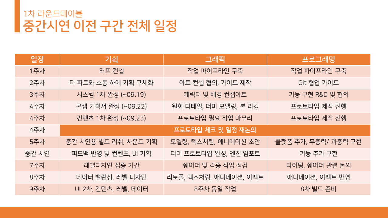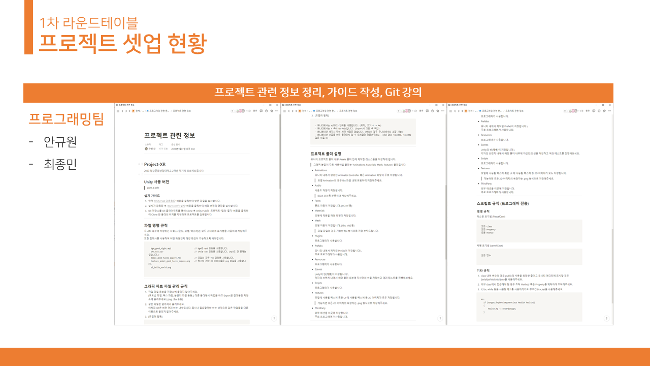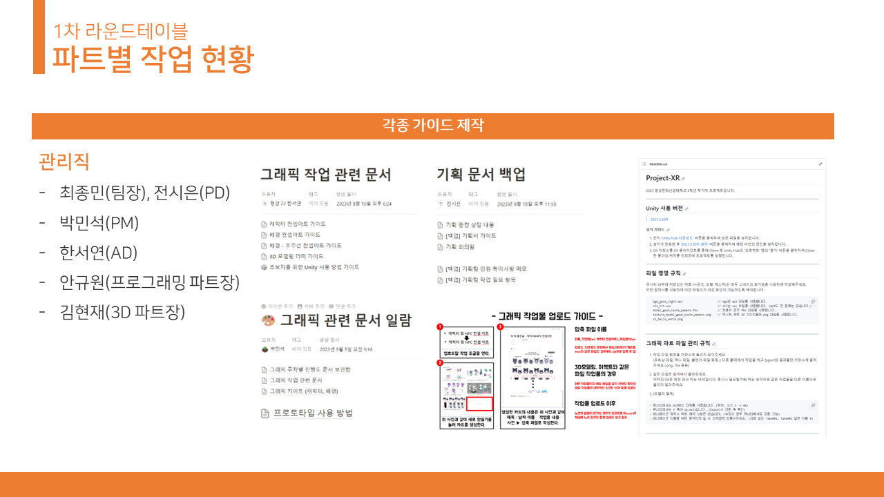 | XR콘텐츠제작프로젝트(캡스톤디자인) 2주차 - 제안서 발표, 회의, 기획서 구체화 (0) | 2023.09.07 |