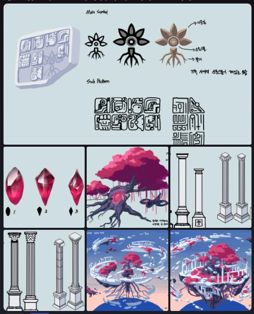 - 배경1차(문양, 소울스톤, 나무, 기둥, 4층)작업물