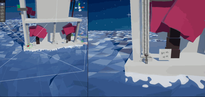 - 발판이 전체적으로 꽁꽁 얼어서 엄청 미끄러운 느낌 연출