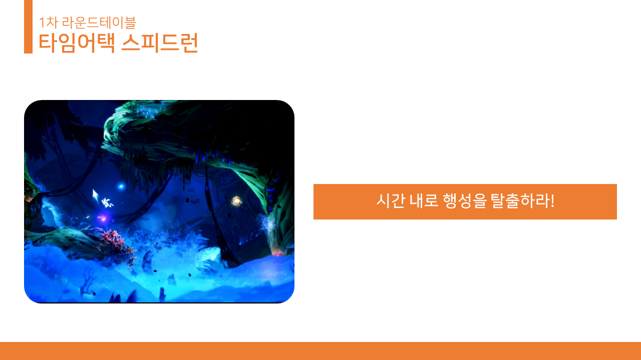 연출이 끝나면 시간 초가 UI 상단중앙에 발생하며 스피드런을 시작.