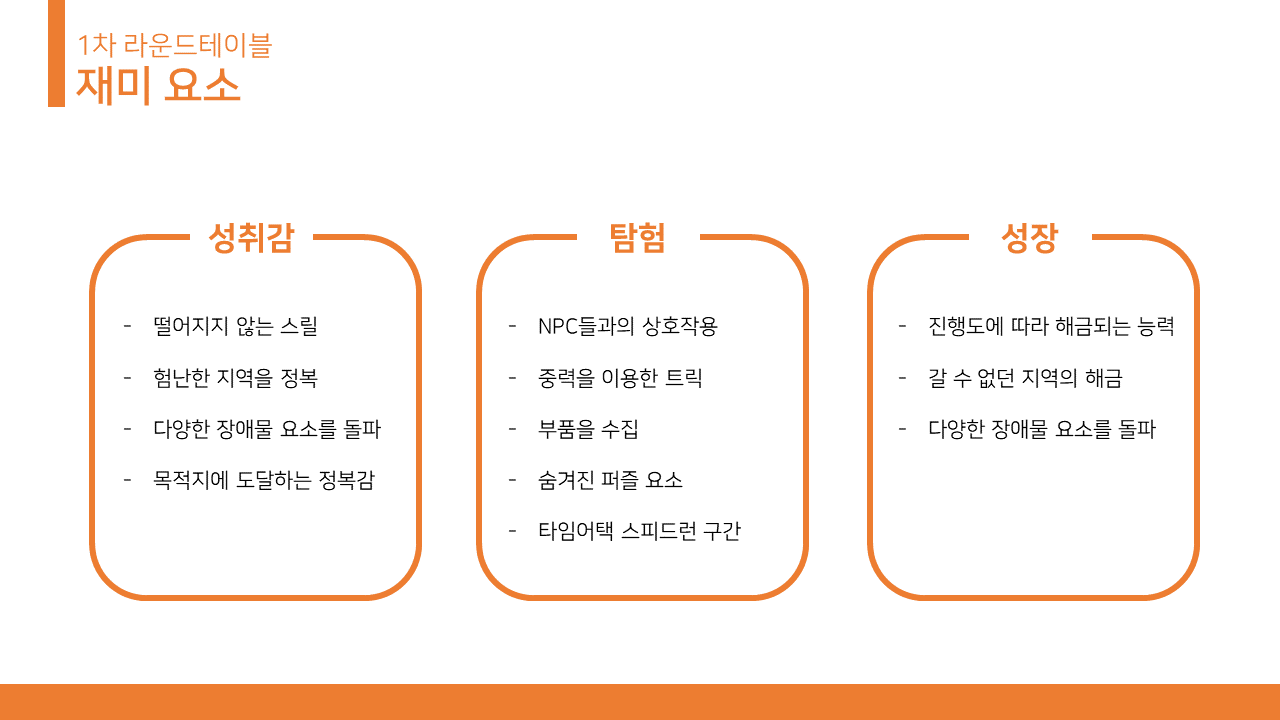 - 전반적으로 성훈님 특유의 레벨 디자인을 살리면 좋을 것 같다고 생각되는 구간.