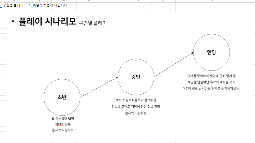 지역별로 어떤 플레이를 하게 될 것인지. 구역별로 이벤트가 하나씩 있는 것이 좋다.