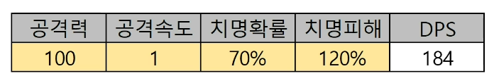 공격력 X 공격속도 계산식에 치명확률이 반영되면 데미지 배율이 높아지도록 계산식을 만들어야 한다.