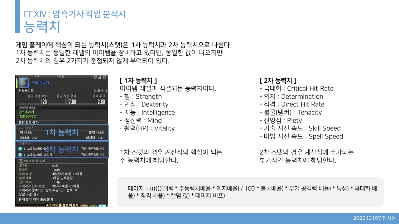 공격력 X 공격속도 X (1 + 치명확률 X 치명 피해)의 형태가 된다.