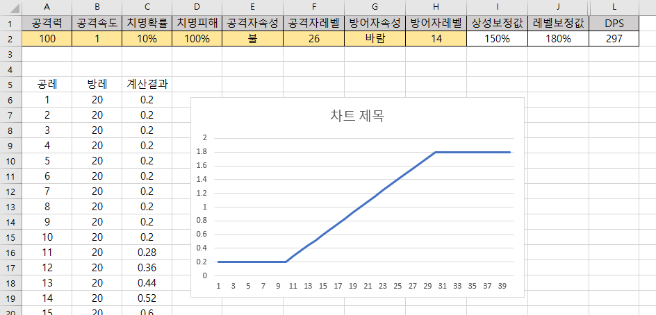 공격력 X 공격속도 계산식에 치명확률이 반영되면 데미지 배율이 높아지도록 계산식을 만들어야 한다.