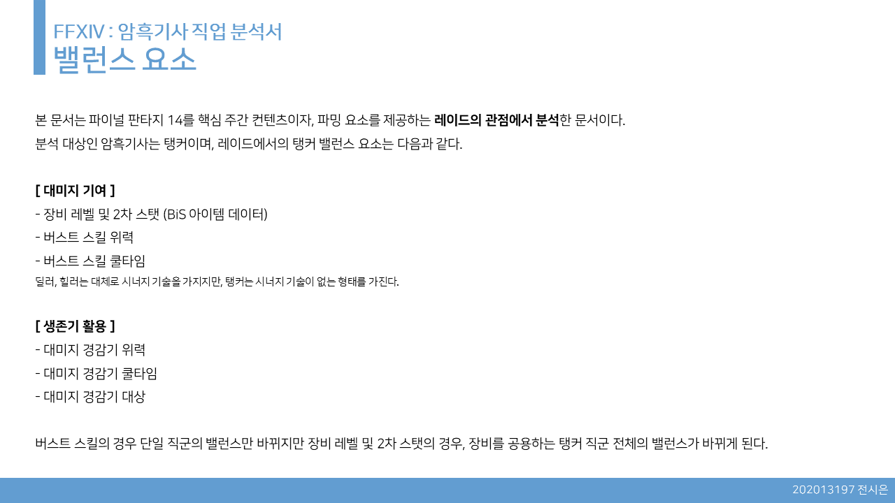 각 밸런스의 핵심 포인트는 기준 (체력 & 데미지)을 통한 비율 (%) 밸런스