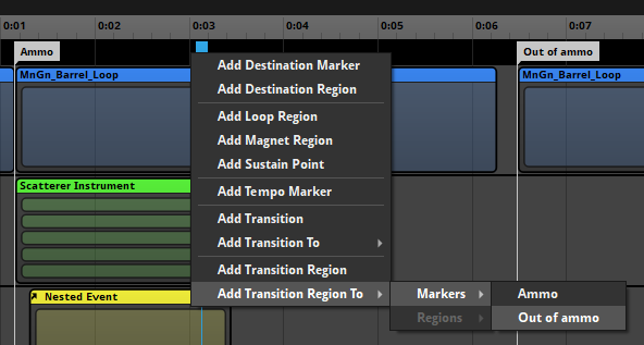Async, Cut, Loop에 Sustain Point 조합(FMOD 신기능)으로 연속되는 사운드를 훨씬 간편하게 만들 수 있다.