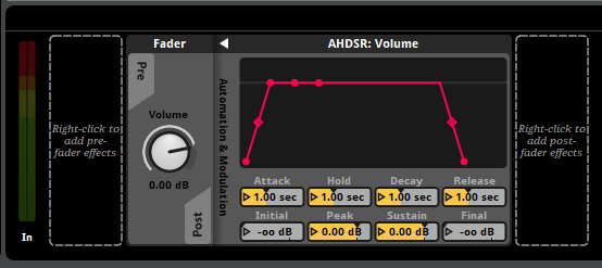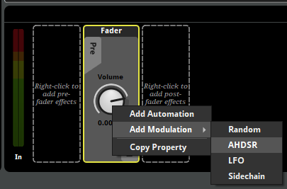 오디오 트랙에서 하단 Fader 우클릭 > Add Modulation > AHDSR 옵션 선택