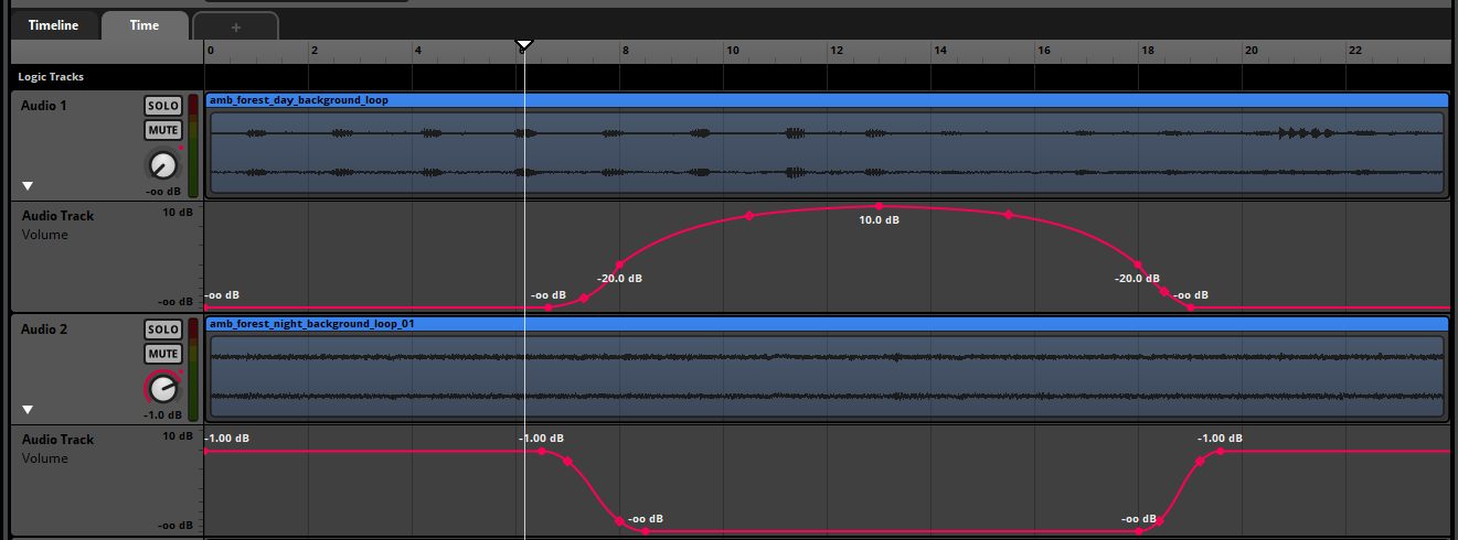 시간 축에 따라 유기적으로 변경되는 환경음의 경우 Timeline에서 처리하지 않는다.