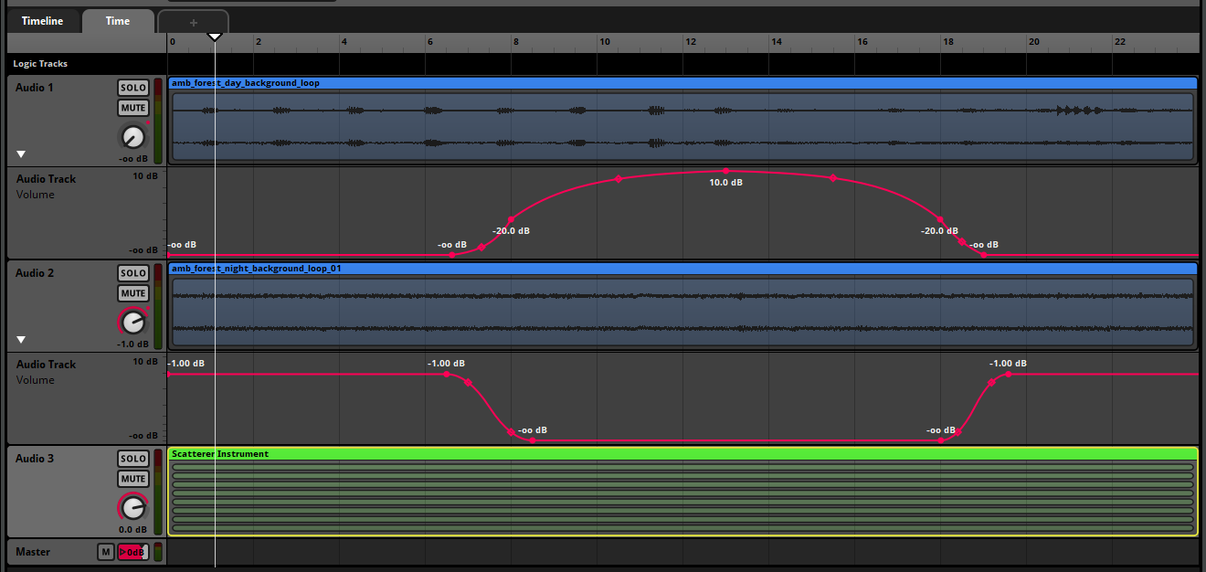 같은 공간에서 시간에 따라 유기적으로 변경되는 (오픈월드) 사운드의 실습