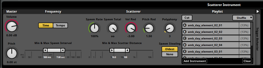 - 볼륨, 피치, 랜덤화, 라우팅 및 DSP 효과를 조정