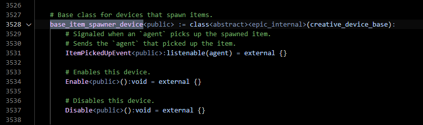 우리가 찾고있는 PickedUp 이벤트를 찾기 위해서는 base_item_spawner_device로 이동해야 한다.