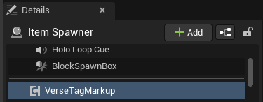 태그 제작 후 Verse Build를 수행하면 태그가 에디터에 추가된다.