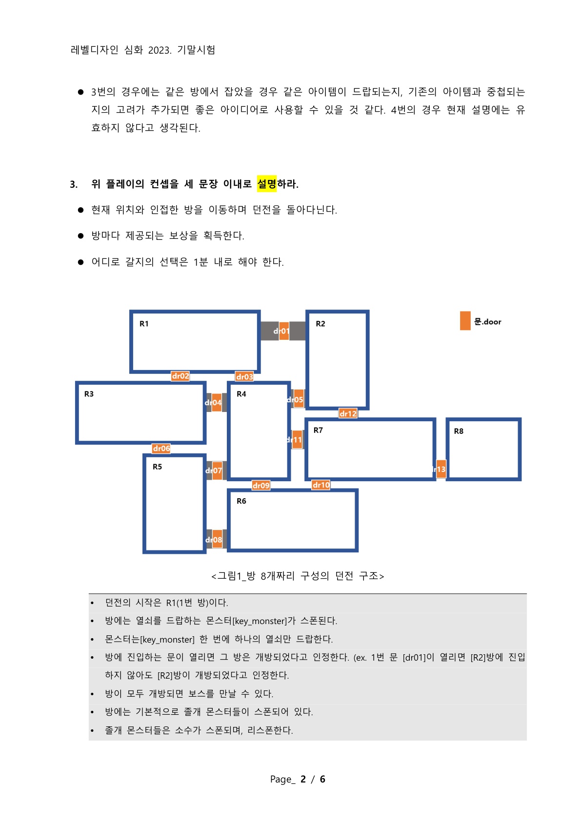 9. 본인이 기술한 설명을 바탕으로 위 던전의 컨셉을 설명하라.