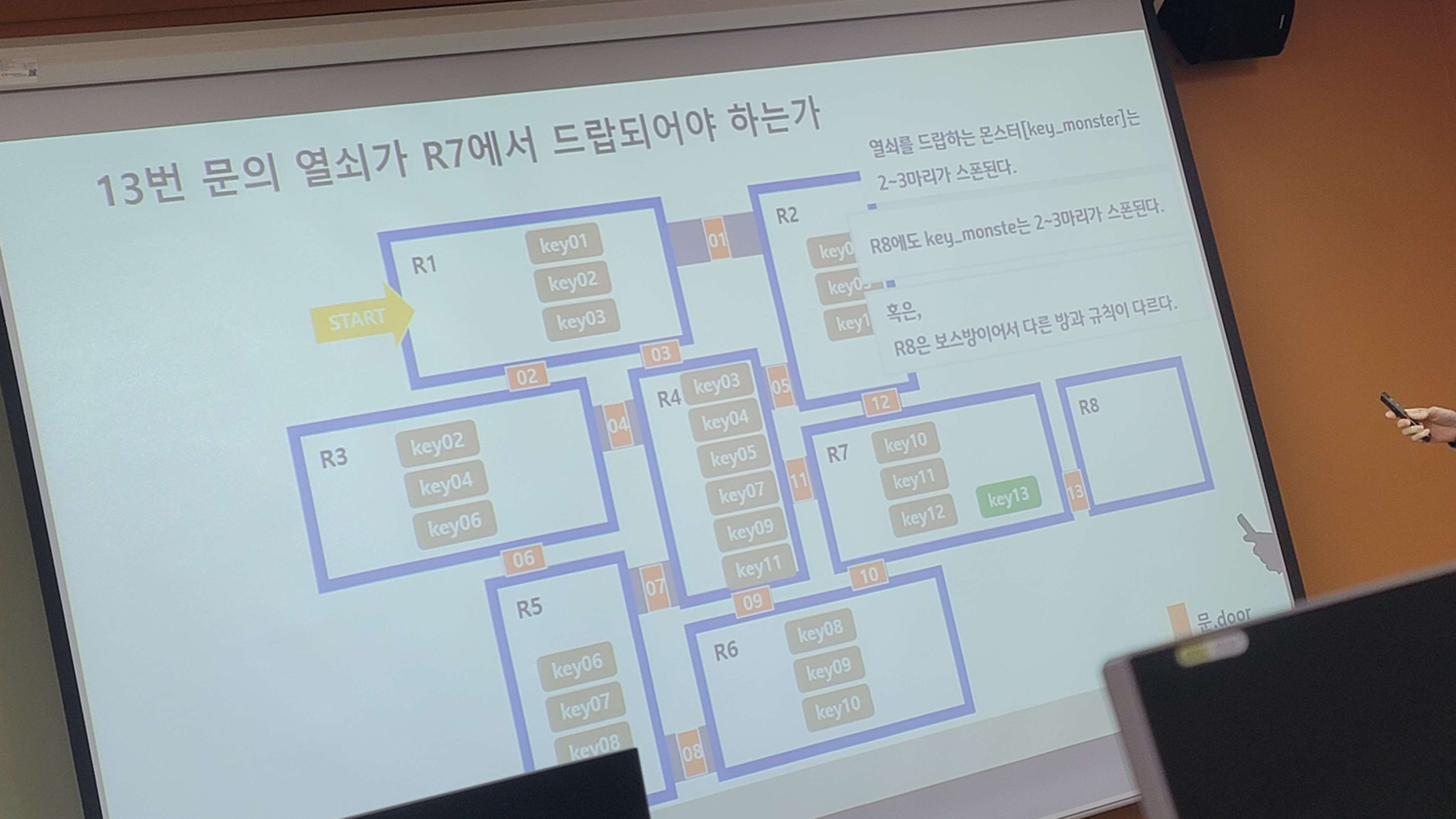 복도에는 문이 존재하며 문지기를 죽이면 문이 열림 > 전투를 어느 정도 진행해야 다음 방으로 진행 가능함.
