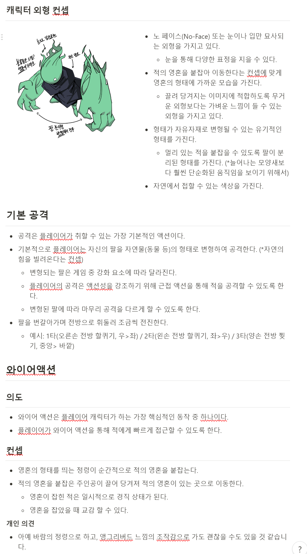 플레이어 캐릭터 컨셉 문서
