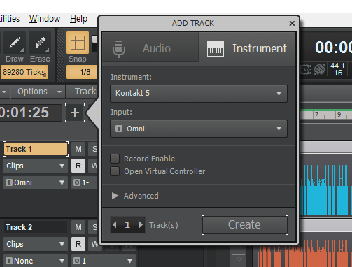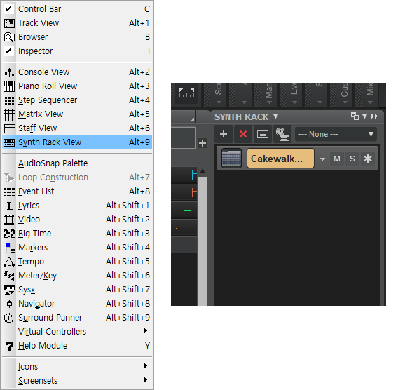 Synth Rack View > Delete Synth 기능을 사용하여 가상 악기를 삭제한다.