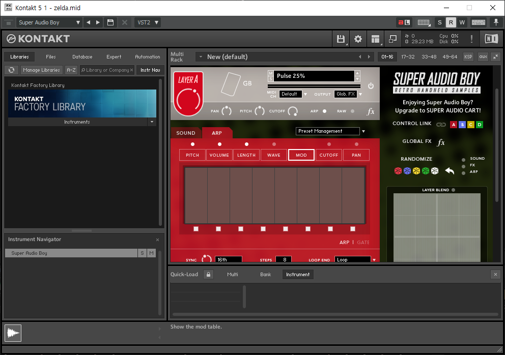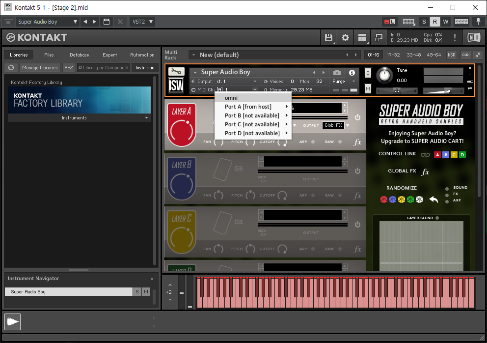 Synth Rack View > Delete Synth 기능을 사용하여 가상 악기를 삭제한다.