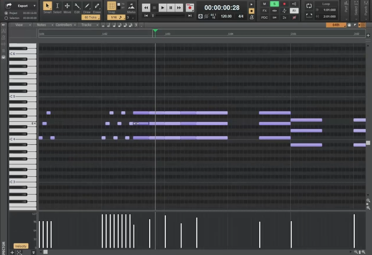 분산 화음을 위해 이렇게 한땀한땀 찍어주는 방법과 오토 아르페지오(ARP)를 사용 해 주는 방법이 있다.