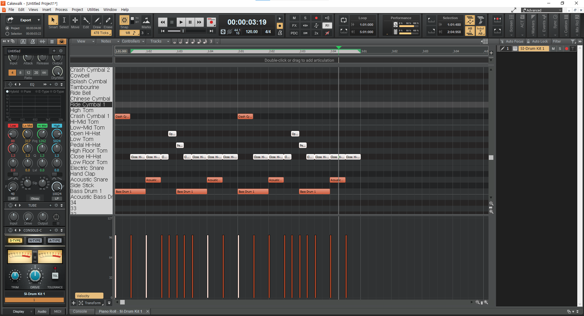 드럼의 표기법은 다양하게 존재하지만, 큰 파트 : 킥, 스네어, 하이햇은 변하지 않는다.