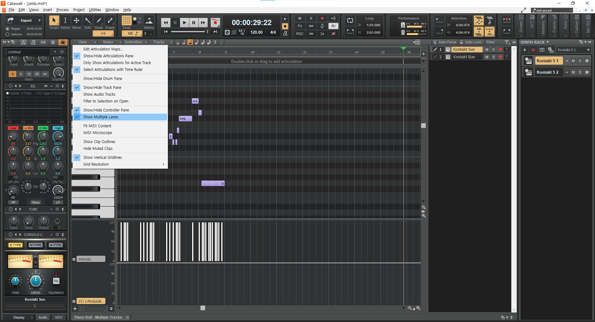 컨트롤러를 추가하고, Show Multiple Lanes 기능을 사용하여 여러 줄을 한 번에 볼 수 있다.