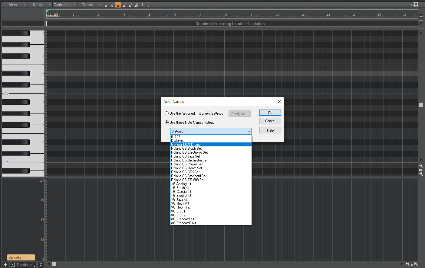 셀렉션 상태로 음표 위쪽에서 클릭 후 위아래로 조절 할 수 있다.