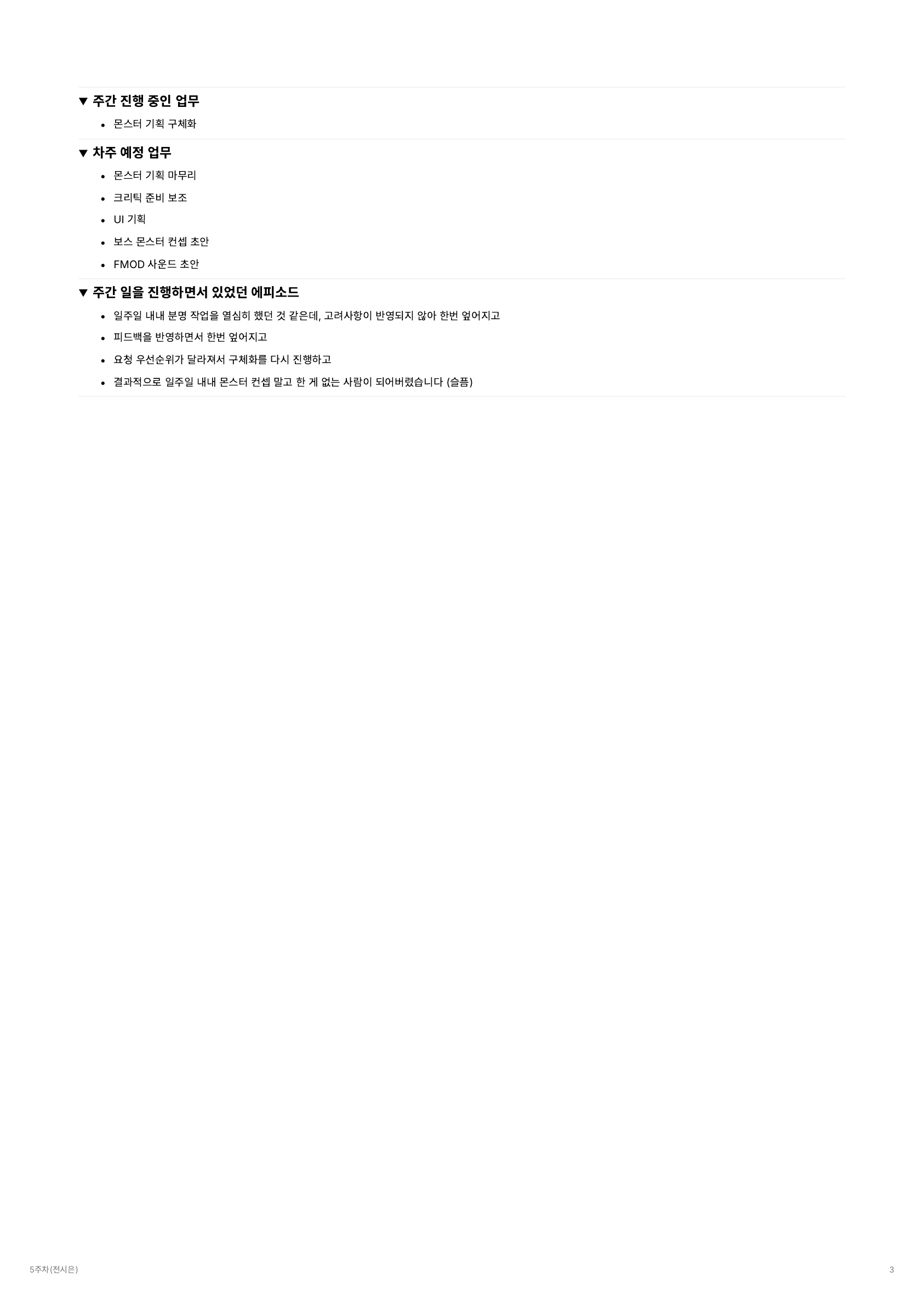 - 진행사항 : 전반적으로 아트 관련 작업의 진척이 크게 진행됨.