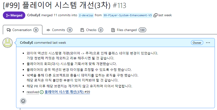 플레이어 시스템 개선 및 그래픽/기획 작업 리소스 병합