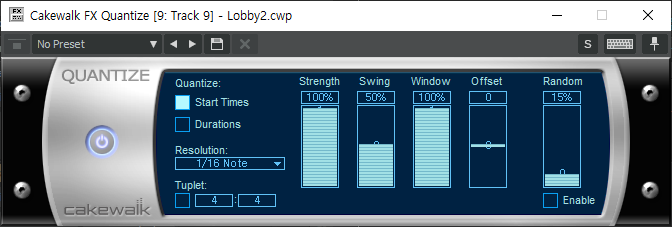 Quantize - Start Times > Randoms : 시작점을 랜덤하게 자동으로 틀어준다.