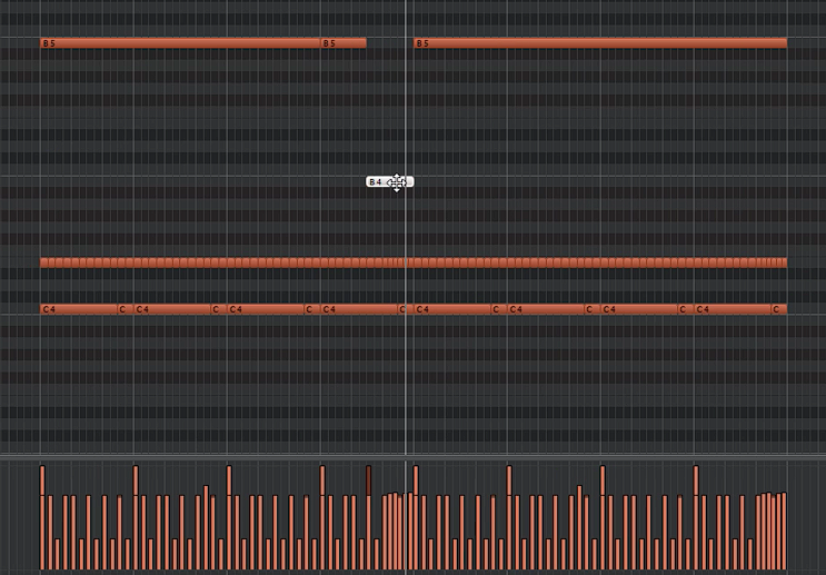 빈 부분은 벨로시티를 약하게 해서 채워주고 연속적으로 이어주는 것이 좋다.