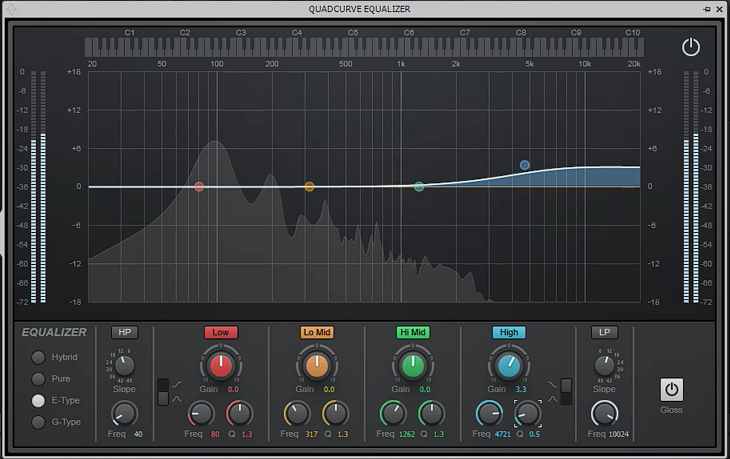 Master Compresser > Gloss 또한 아날로그 시뮬레이터이다. 하드웨어 장비의 기능을 가져온 것.