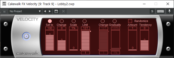 Velocity - Randomize - Amount(세기, 정도) : 입력된 미디 += Amount(20)