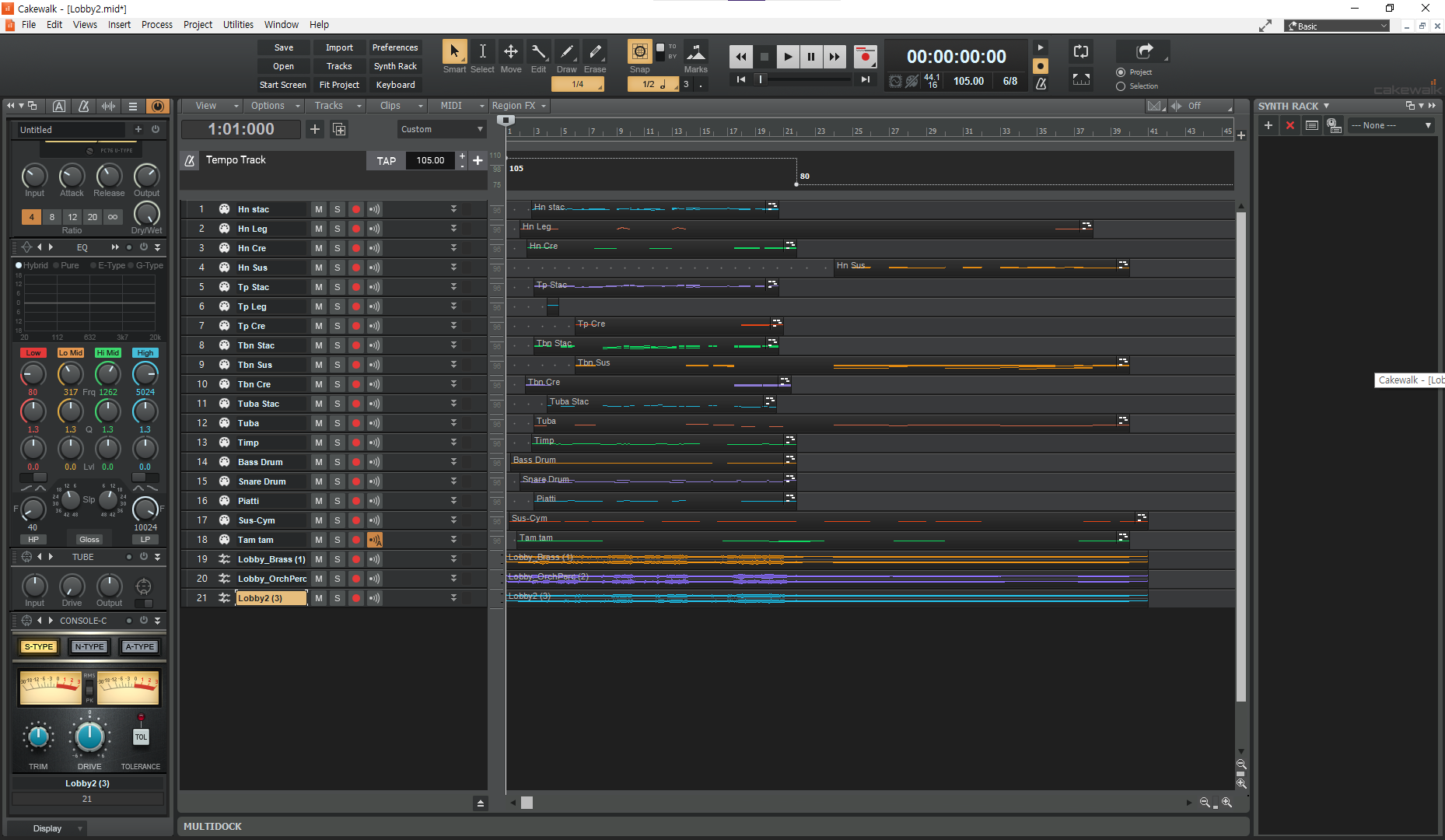 Time : 1.5, Predelay 16, Wet - 10.5 정도.. 데이터를 ctrl로 복사하여 옮긴다.