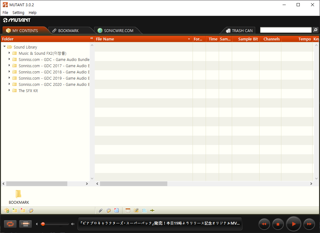 사운드를 만들기 위해서는 Audio 탭에서 라이브러리를 구축해야 한다.