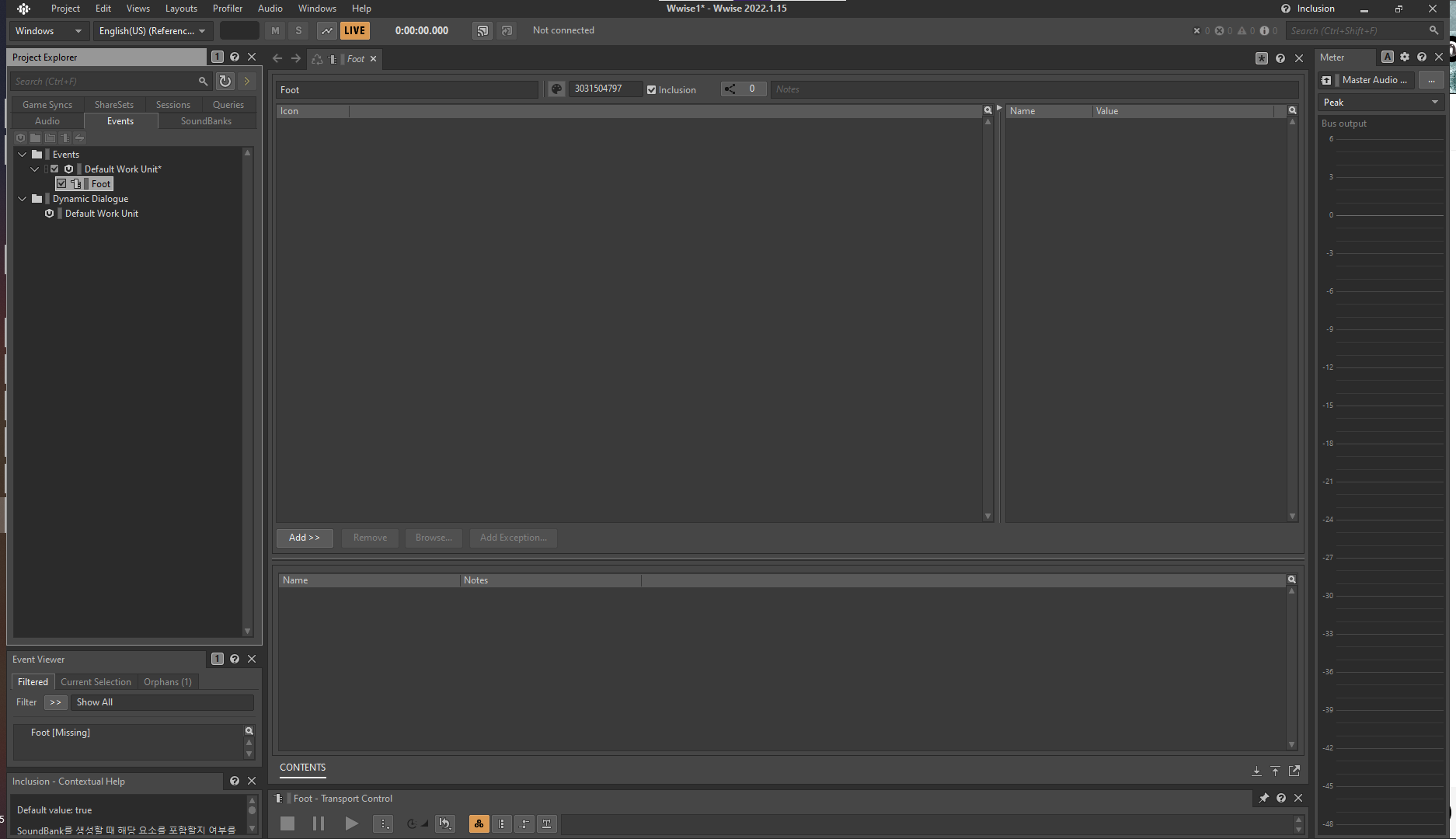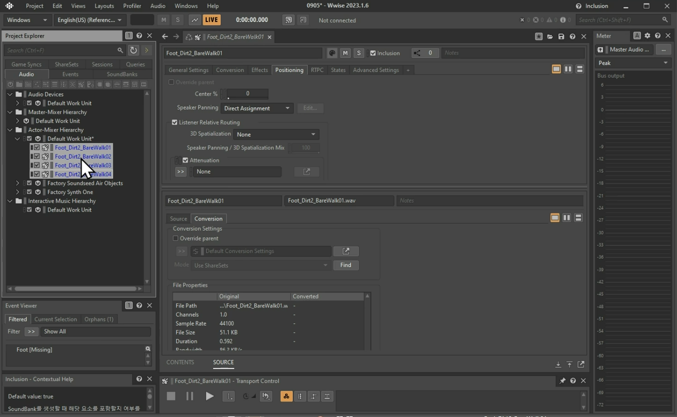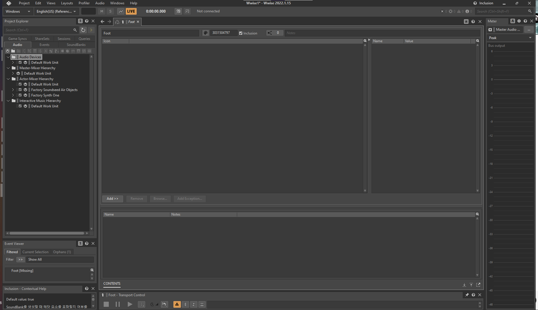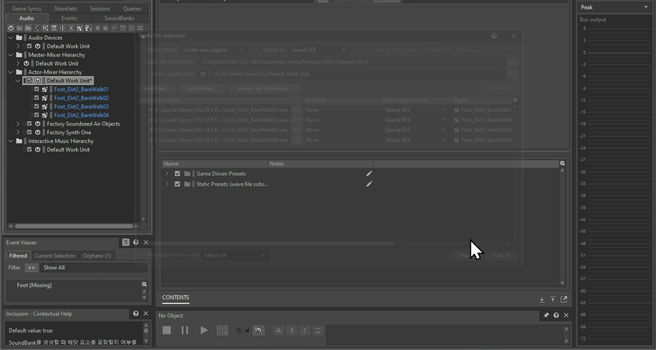 Actor-Mixer Hierarchy에서 만든 것은 오디오 라이브러리고, 이벤트가 아니다.