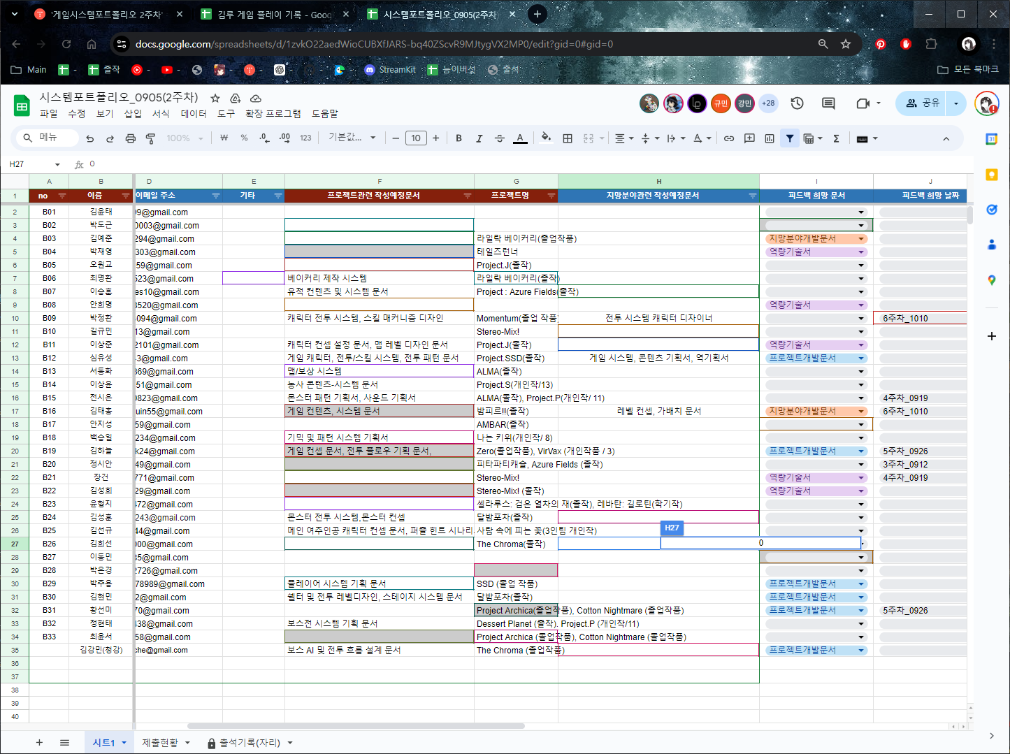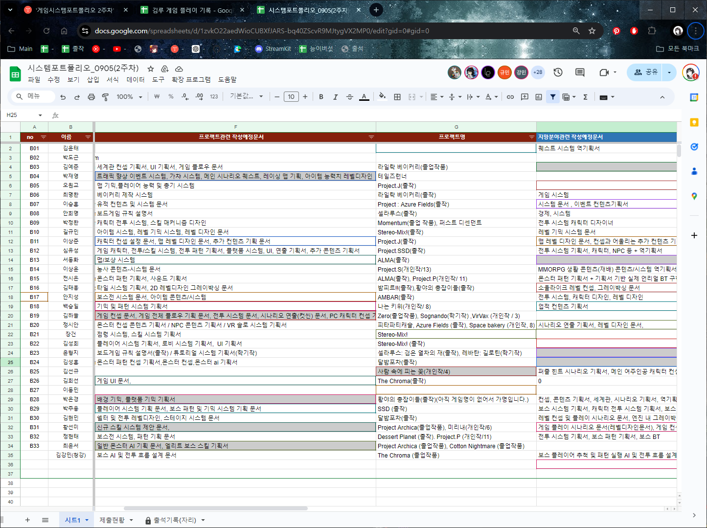 구글 시트에 작성한 프로젝트를 설명할 수 있는 문서 제작하기